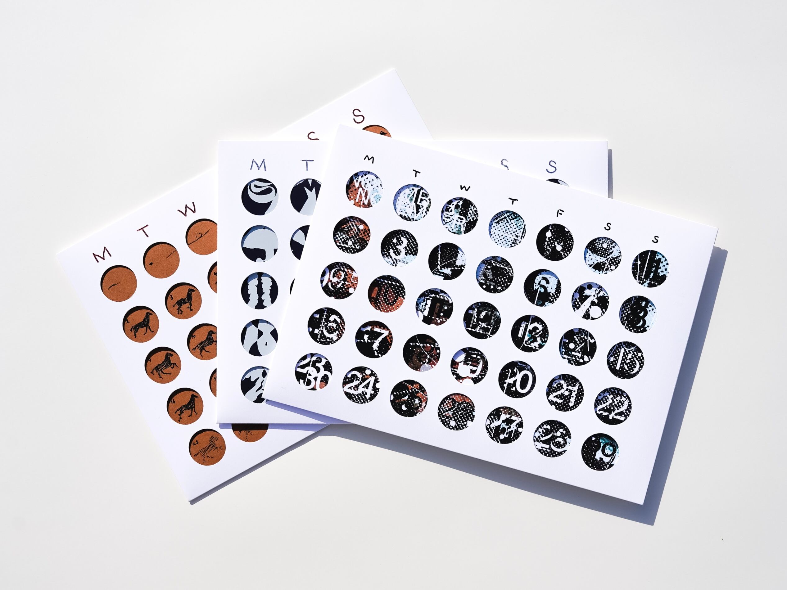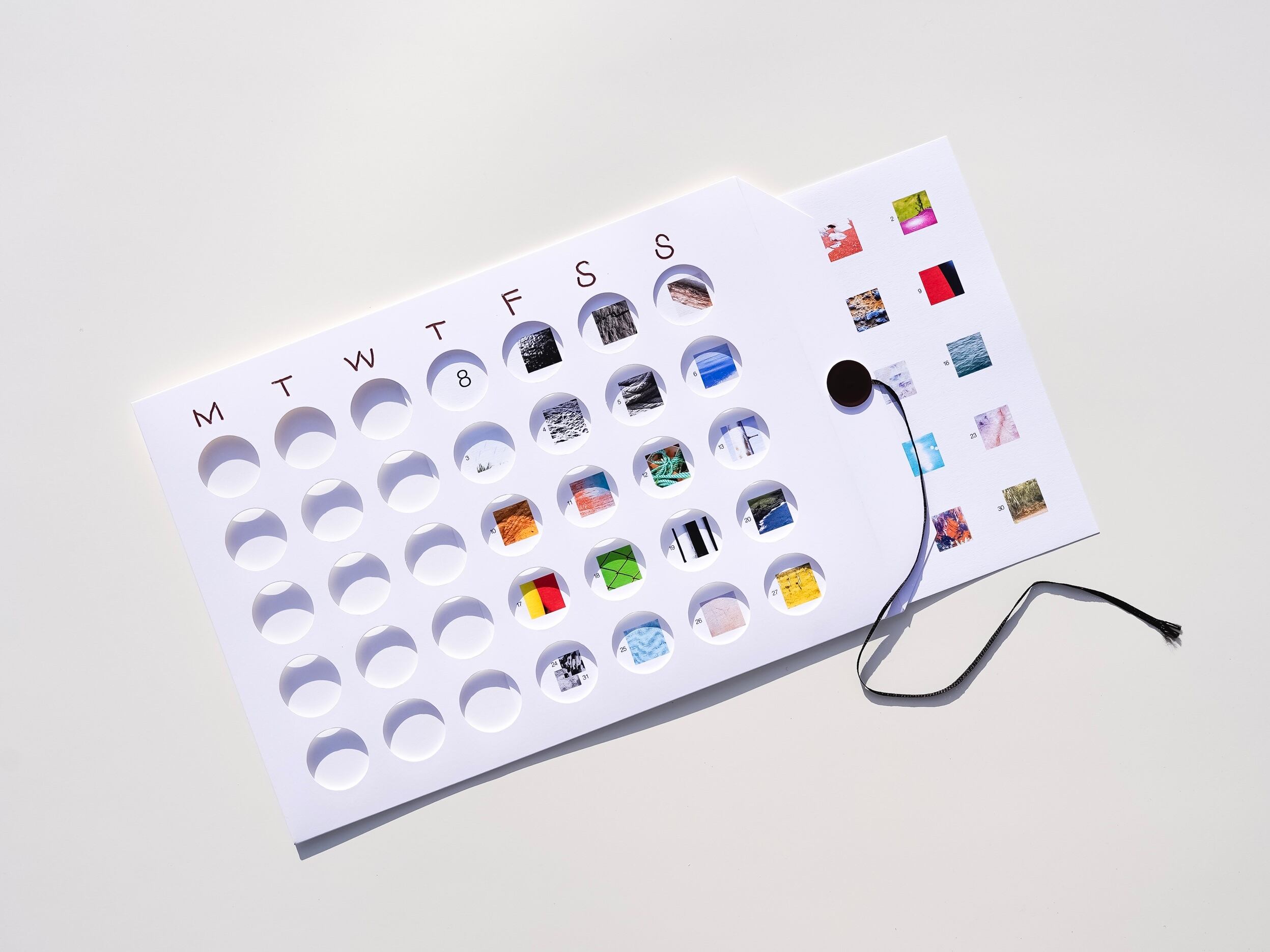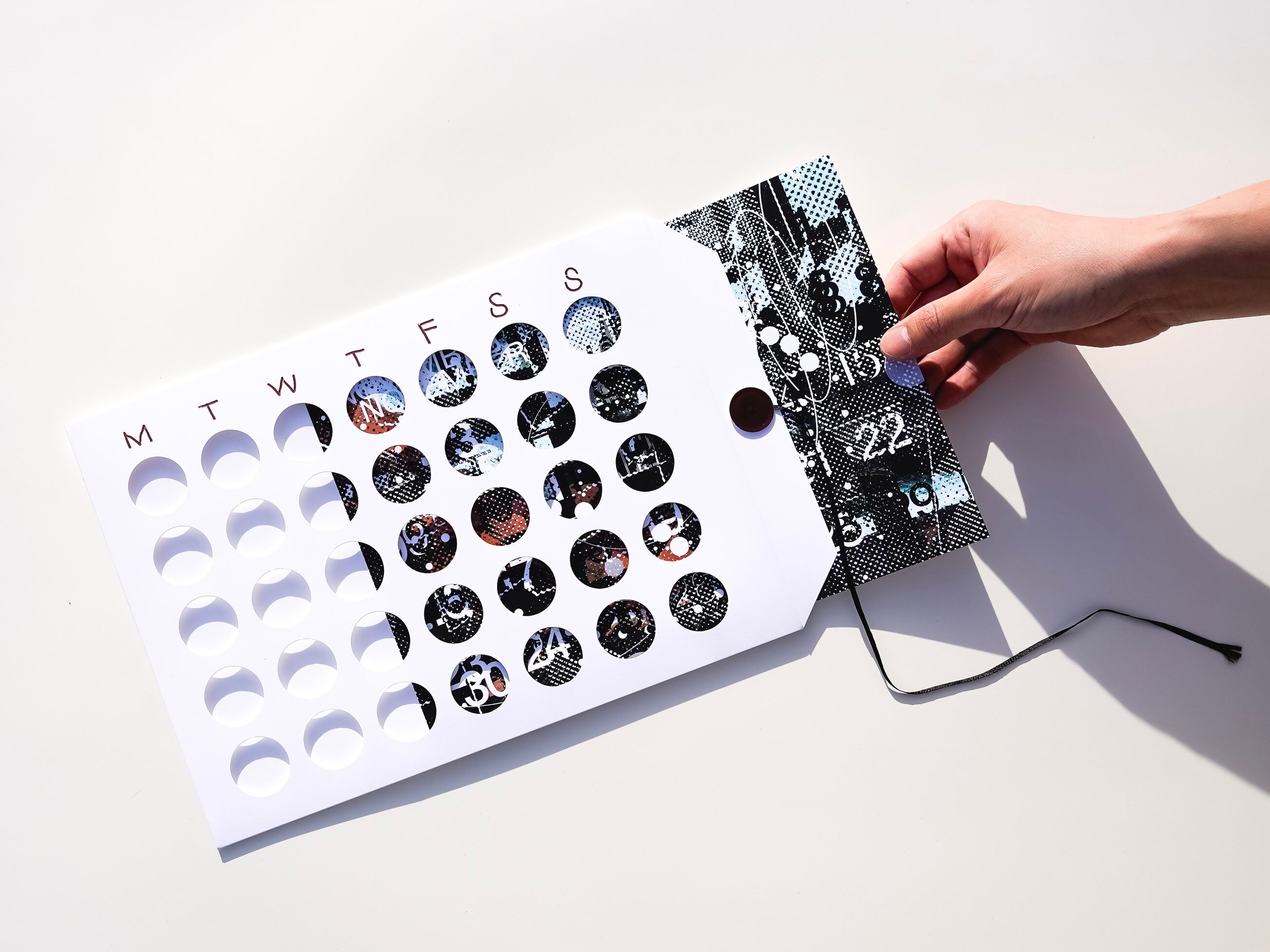 穴からのぞいて日付を確認できるデザインです。パッケージの中に12ヶ月分の用紙が入っていて、毎月違うテイストが楽しめます。